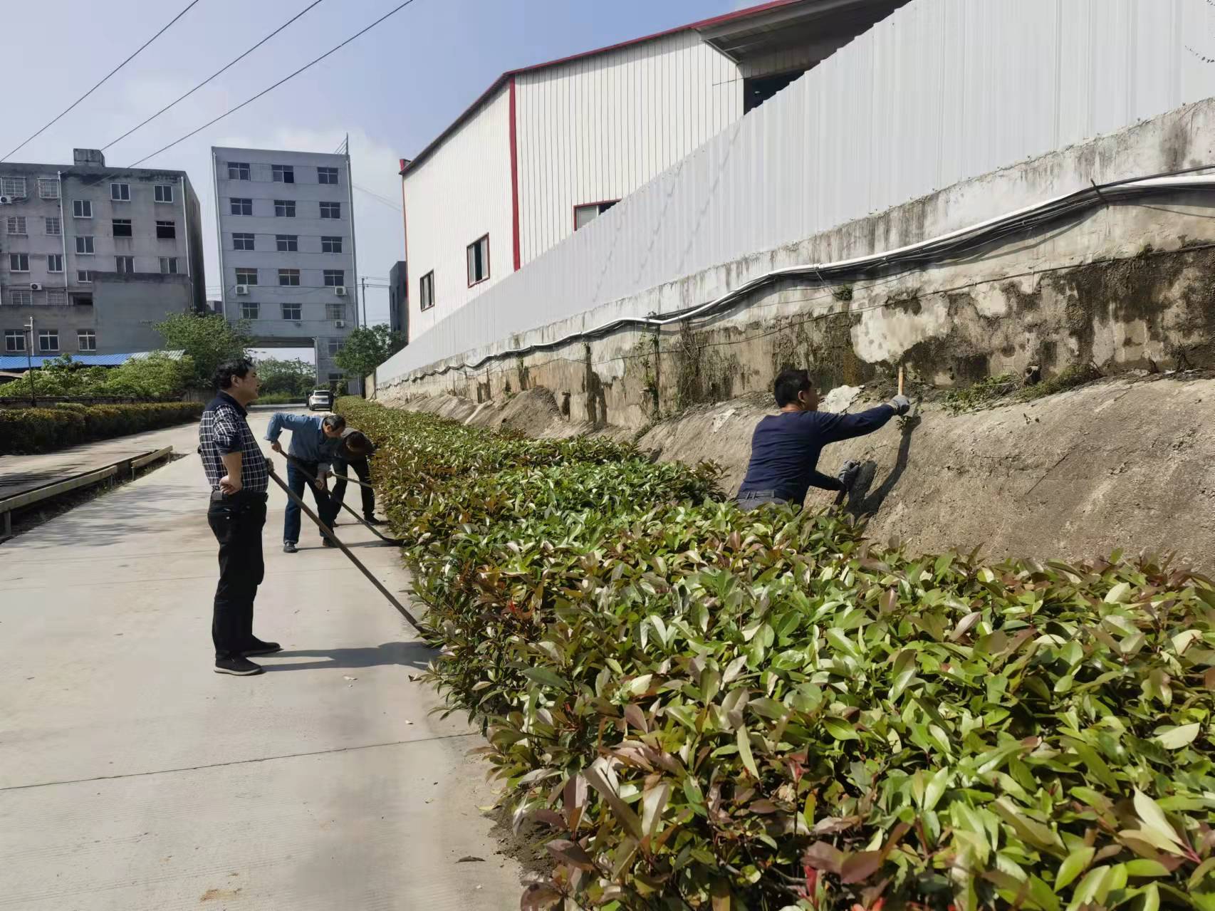 在余书记的带领下,为厂内的绿植绿化进行了全面的修整,并且由书记向党员们传授了关于每种植物修剪的技巧和对于花草习性以及品种分类的认识。